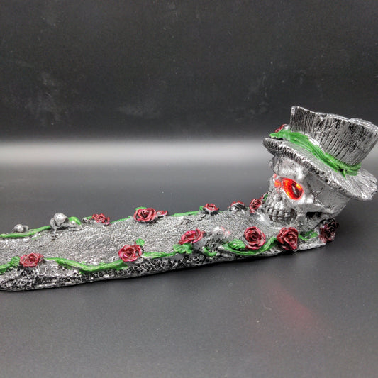Skull w/ Roses Incense Burner - 11"