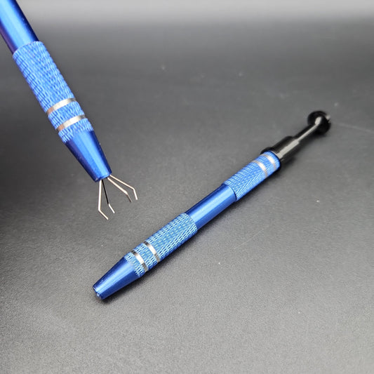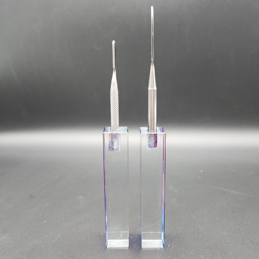 Dab tools are scoops or picks used to move wax or concentrates into a dab nail with precision. Different styles work best with specific types of concentrates, and having the right tool can make loading cleaner and easier. Our selection includes metal and glass dab tools, with options ranging from classic long dabbers to unique designer pieces.