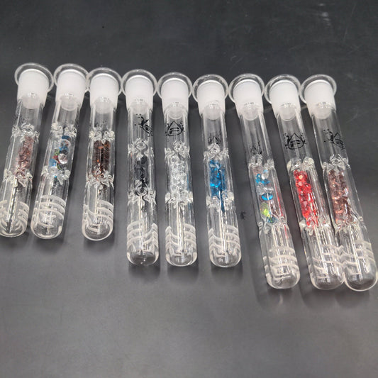 Need a new downstem for your beaker bong? A downstem is the glass tube that connects your bowl slide to your bong or water pipe, pulling smoke through water for smoother hits. Measured from the bottom of the frosted joint to the tip, these glass stems are available in multiple sizes, including 14mm and 18mm, to match your setup. Some feature percolators for added diffusion, while triple-slitted downstems remain the most common design.