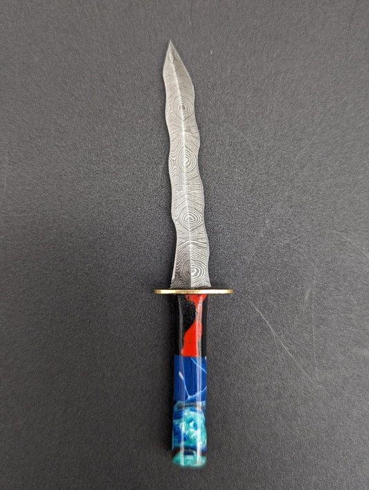 Resin Handle Damascus Steel Dagger Dab Tool 4"
