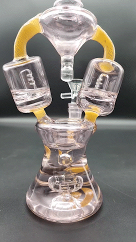Recyclers provide a very smooth smoking experience because the water is usually brought in by one or more uptakes and pushed out through a drain in a different part of the piece. The constant hit and less "chug" that this produces makes recyclers a popular choice for dab rigs. Glass is typically used to make recyclers since they need a durable material. Additionally, we provide several incycler rigs, which are fundamentally recyclers without external tubes that recycle water inside the bong.