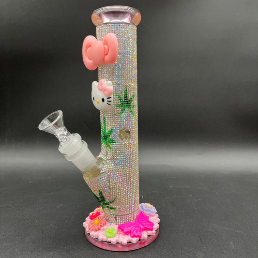 9.5" Fully Jeweled Kitty Straight Tube Bong