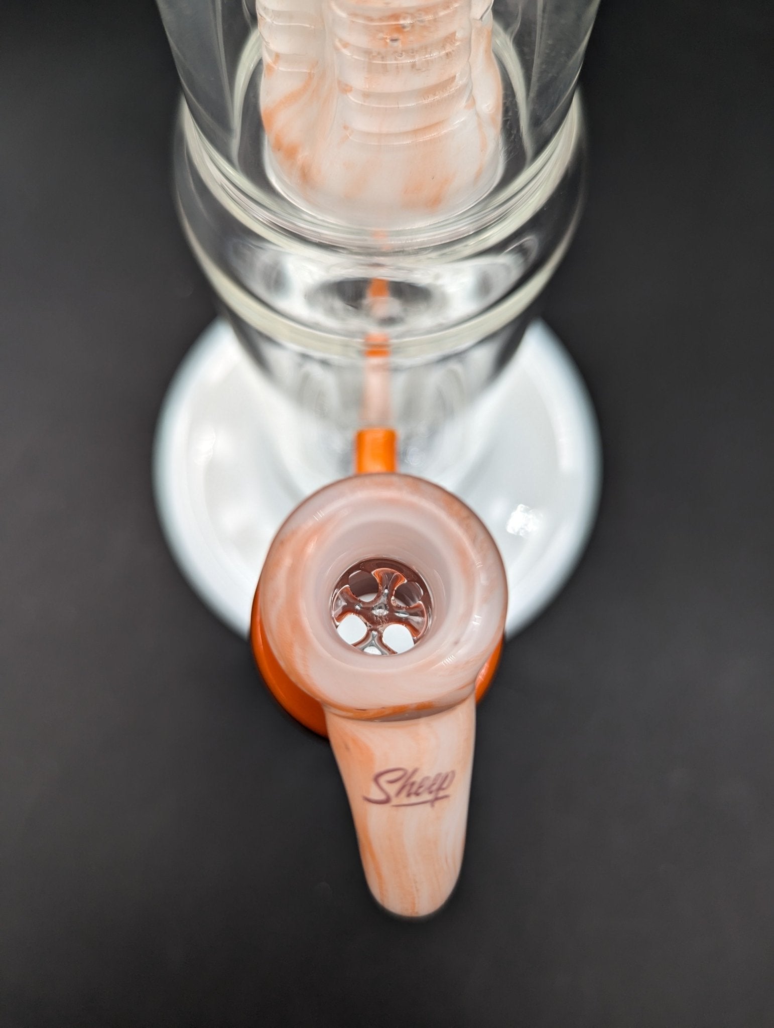 Sheep Glass flower bong with orange creamsicle color accents.